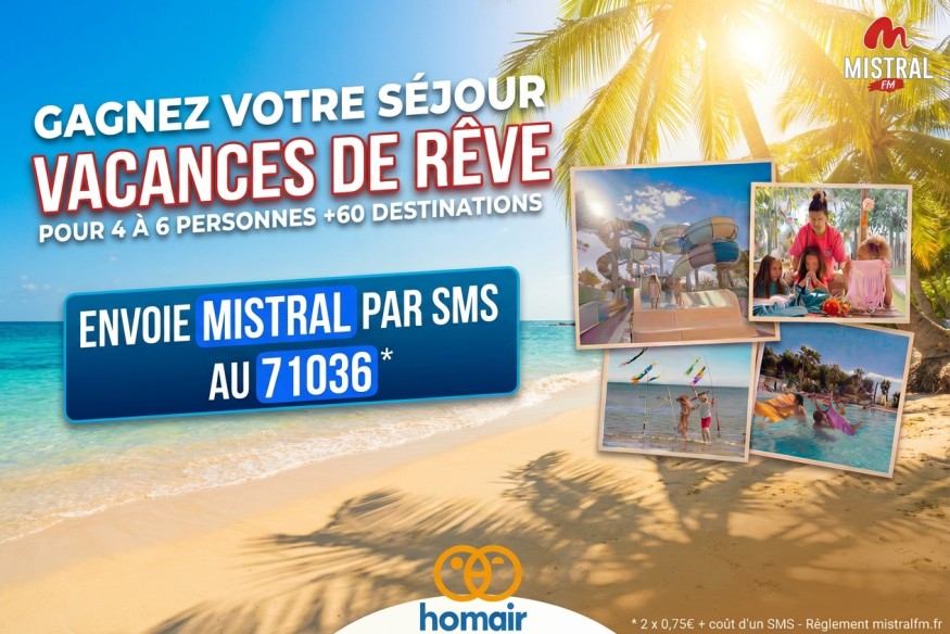 Parce qu’on n’en a jamais assez de chiller au soleil, Mistral FM et Homair vous offrent votre prochain séjour en famille ou entre amis. Prêt à faire vos valises...