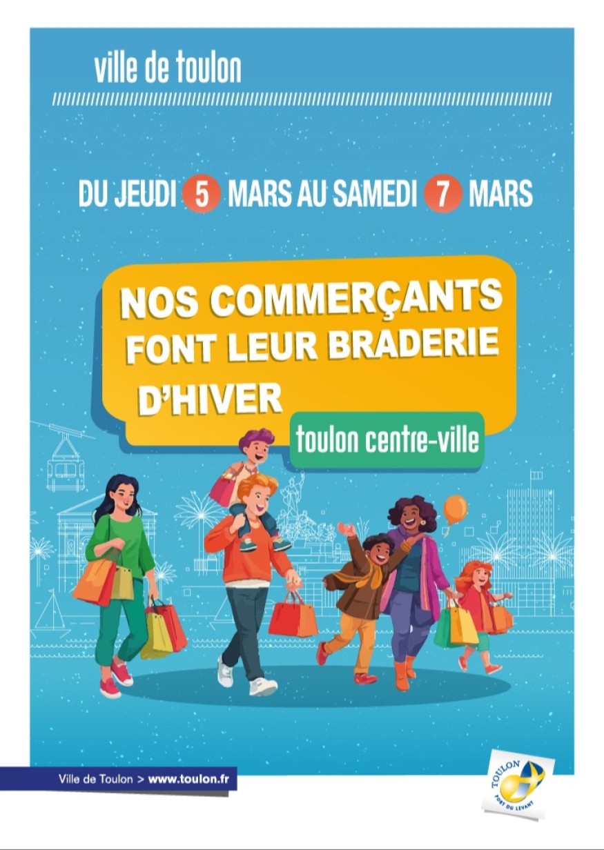 Forte du succès des années précédentes, la Ville de Toulon organise la 4ème édition de la Braderie d’Hiver des commerçants du centre-ville. Elle témoigne de la volonté affirmée par la Ville d’accroître l’attractivité commerciale du centre-ville et la consommation locale. La Braderie mettra en avant les atouts et le savoir-faire des commerçants et artisans.