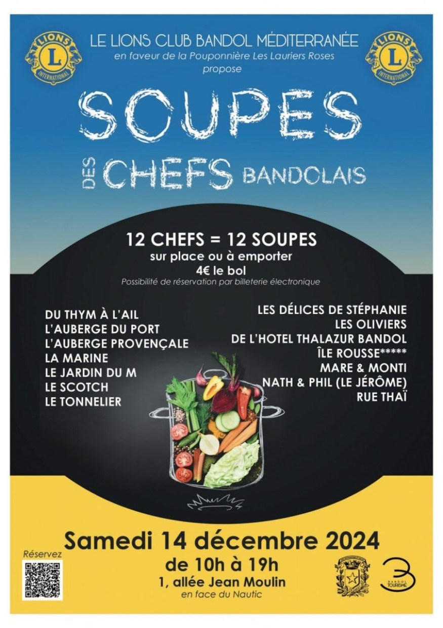 Plongez dans un événement chaleureux et gourmand à Bandol ! Le Lion’s Club Méditerranée organise une nouvelle édition des Soupes des Chefs, un moment culinaire au profit de la Pouponnière Les Lauriers Roses, dédiée à soutenir les enfants en difficulté !