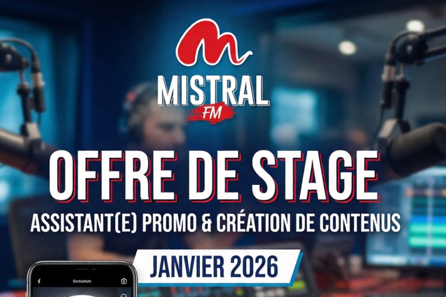 Mistral FM recherche son/sa futur(e) Stagiaire Assistant(e) Promotion & Création de Contenus pour une durée de 4 à 6 mois dans le Var (83).