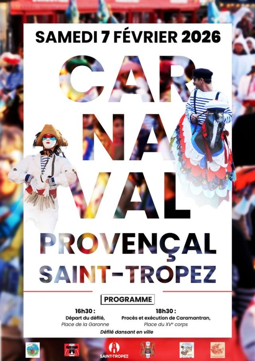 Défilé festif et déambulation à travers la ville dès 16h30 le samedi 7 février 2026, puis l'incontournable procès et exécution de Caramantran au programme du Carnaval Provençal de Saint-Tropez.