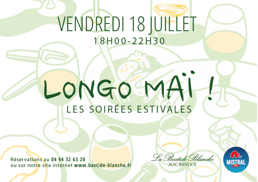 Vendredi 18 juillet, direction le Domaine de la Bastide Blanche pour la soirée Longo Maï ! Au programme : soirée estivale avec animations musicales, dégustations de vins et foodtruck.