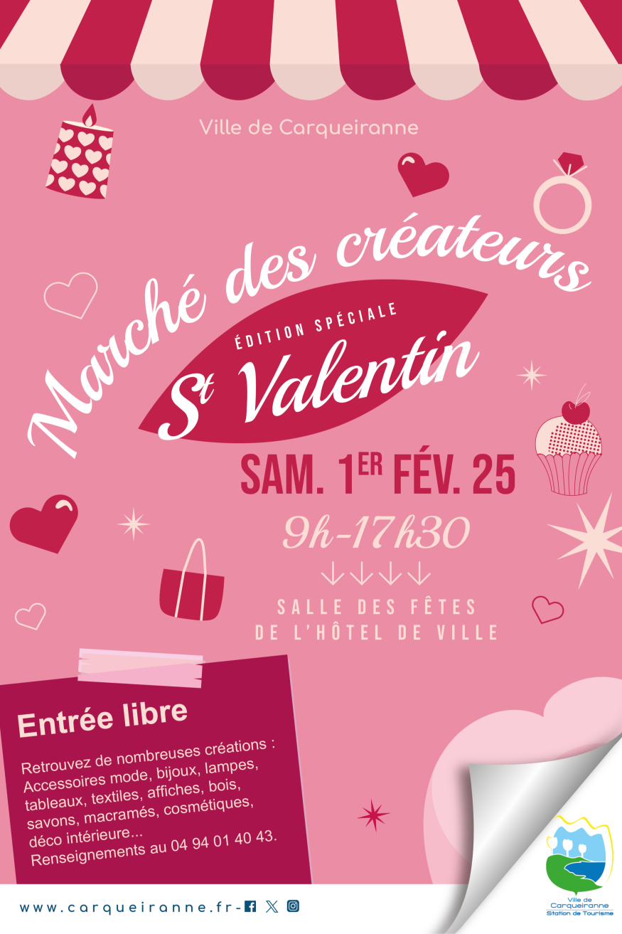 La Ville de Carqueiranne célèbre l’amour et la créativité avec un événement exceptionnel à l’occasion de la Saint-Valentin : un marché des créateurs, dédié aux trésors faits main et aux créations uniques des artisans locaux !