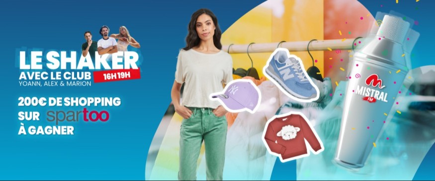 Tous les jours dans Le Club entre 16H et 19H avec Yoann, Alex & Marion, secoue le SHAKER et tente de remporter 200€ à dépenser sur Spartoo.com !