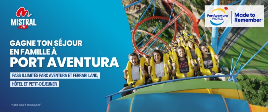 Pour tenter ta chance, inscris-toi vite dans le formulaire ci-dessous. Si on t'appelle et te demande "Quelle est la radio qui t'invite à Port Aventura?" réponds Mistral FM !