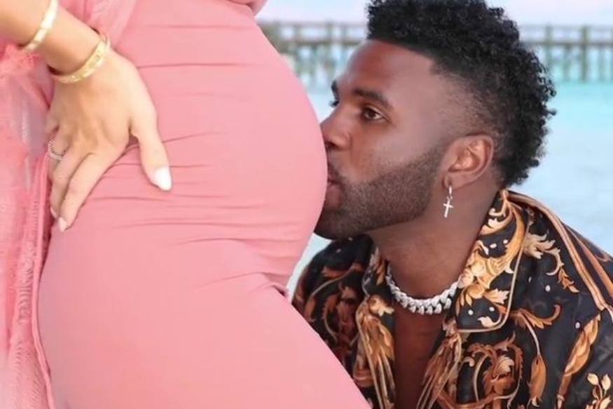 Une vidéo a été partagée sur les réseaux sociaux dans laquelle on voit Jason Derulo au côté de sa compagne, en train de marcher sur le sable de Cable Beach, à Nassau, aux Bahamas. L'artiste s'agenouille ensuite pour caresser le ventre arrondi de la jeune femme. Il ajoute en description "Je ne pourrais pas être plus heureux à l'idée de vivre ce nouveau chapitre de nos vies"....