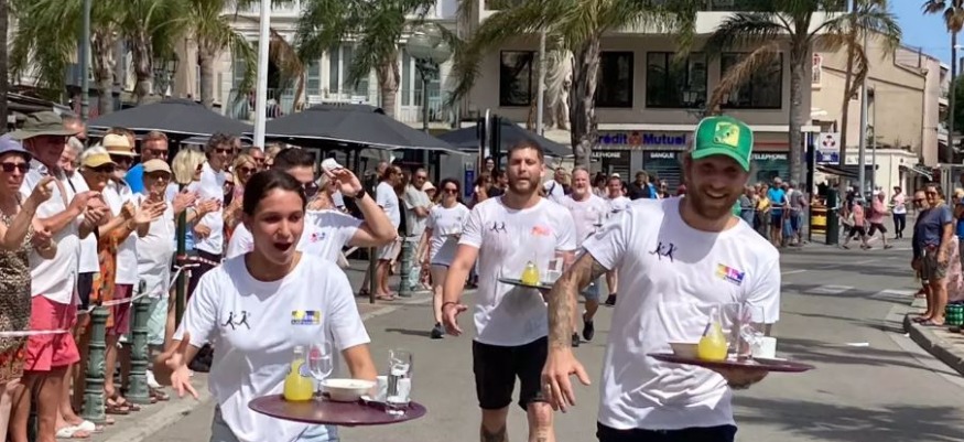Le public était nombreux tout au long du parcours, une boucle entre le carrousel et les quais des Baux en passant par le port, pour acclamer les participants. Un grand bravo aux lauréats, et tout particulièrement au premier, arrivé en 18’52’’ sans renverser une seule goutte! Il s’agit de Gary, du café-restaurant La Marine. L’établissement a ainsi remporté le trophée « Challenge des serveurs et des serveuses », qui sera remis en jeu l’année prochaine.