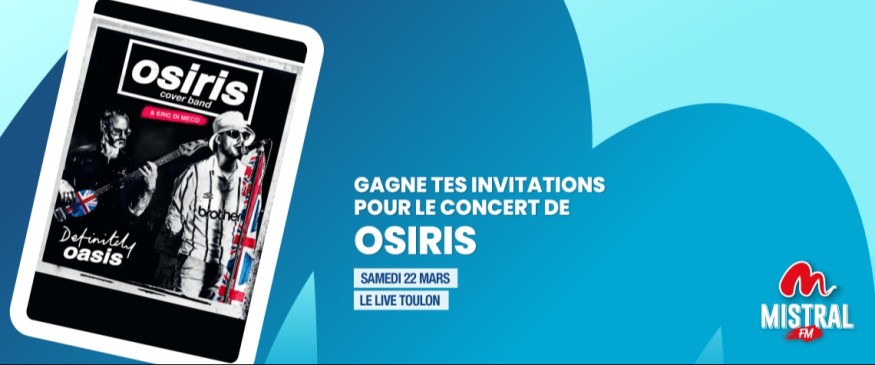 Mistral FM t'offre tes invitations pour le concert d'Osiris, le cover band d'Oasis, le samedi 22 mars à 20H au Live à Toulon.